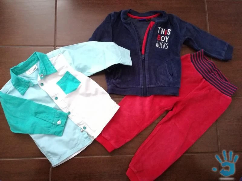 Predám balíček oblečenia č. 86 z FOTO. Balíček obsahuje teplákovú súpravu a košeľu s dlhým rukávom.