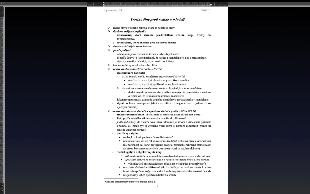 Riešením sú poznámky z prednášok, seminárnych hodín a iné študijné materiály z tretieho ročníka bakalárskeho štúdia v odbore právo.
