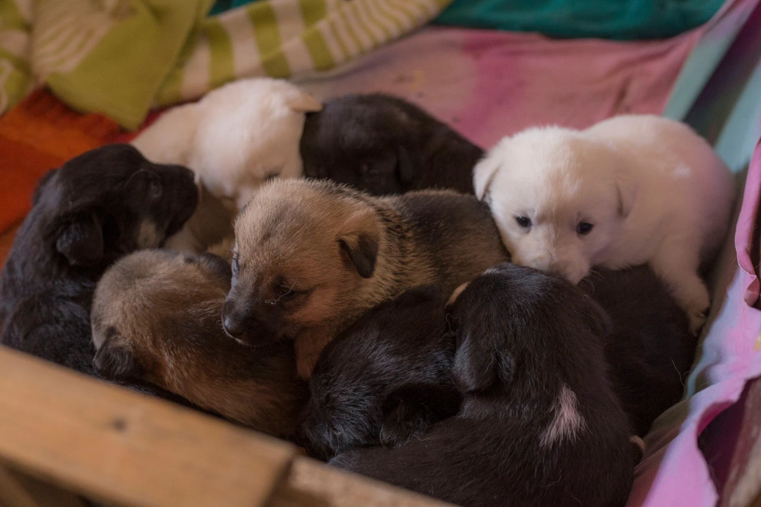 Na predaj je 5 šteniatok. 3 z týchto fotografií sú už rezervované. Voľné sú: Biela fenka, hnedá fenka, čierno-biela fenka, čierny pes, čierny pes. Na fotografiách majú šteniatka 4 týždne. No teraz už budú mať 6-ty týždeň. Ich mamka je Čúvač a otec je kríženec Karelského medvedieho psa. Psíkovia sú určené na chov vonku. Sú odčervení. Ak by ste mali záujem, môžem vám poslať bližšie fotografie.